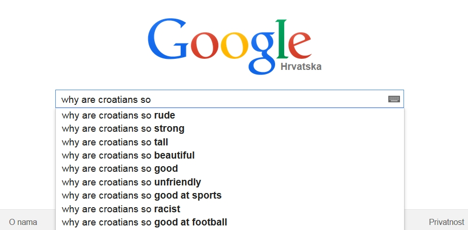 Kada u Googleovu tražilicu upišete pojam "Why are Croatians so..." - prvi na popisu mogućih upita jest "rude" (nepristojan).